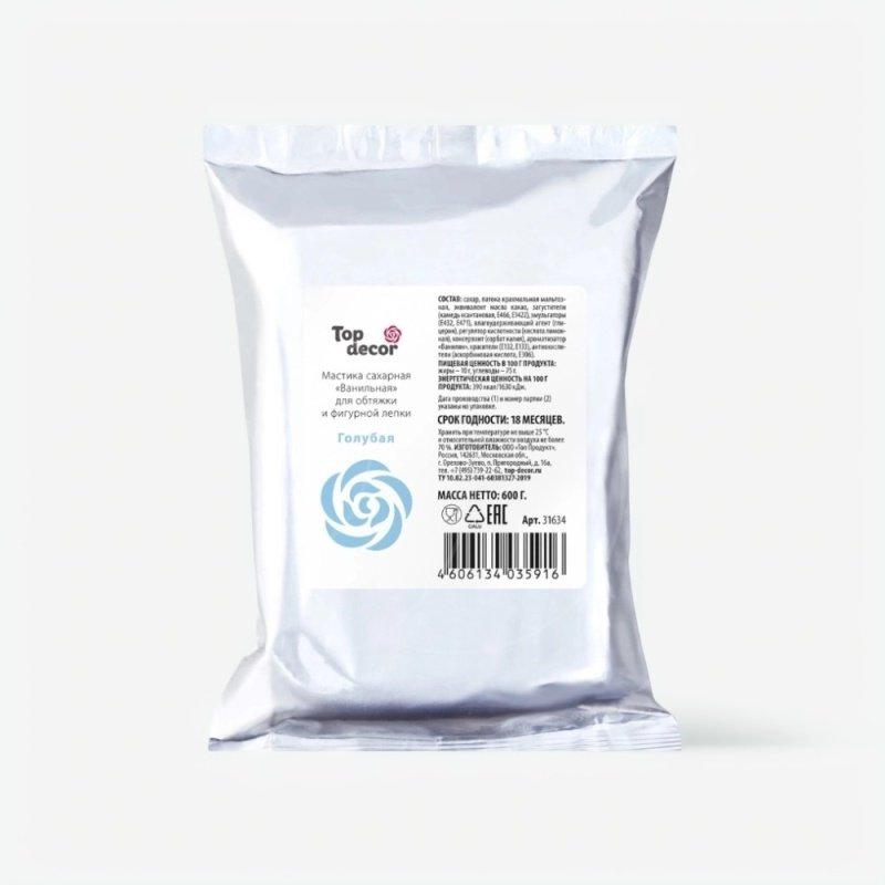 Доставка Мастика кондитерская ванильная Top Decor "Голубая" 600 г из магазина в вашем городе: