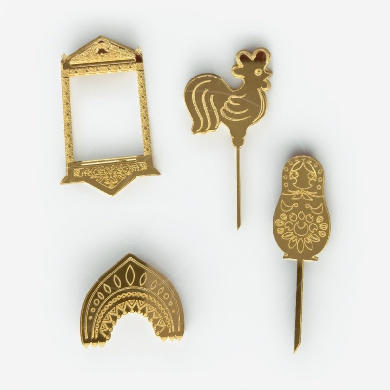 Доставка Набор топперов декоративных акриловых "Русский стиль" Золото 4 шт из магазина в вашем городе: